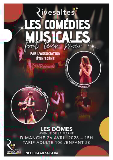 Depuis 2024, Étin'Scène est devenue une association culturelle incontournable du paysage local. Spécialisés dans la comédie musicale et les arts de la scène, nous faisons vibrer Toulouges au rythme du chant, de la danse et du théâtre. Découvrez nos activités pour partager des moments de création uniques et monter sur scène à nos côtés !